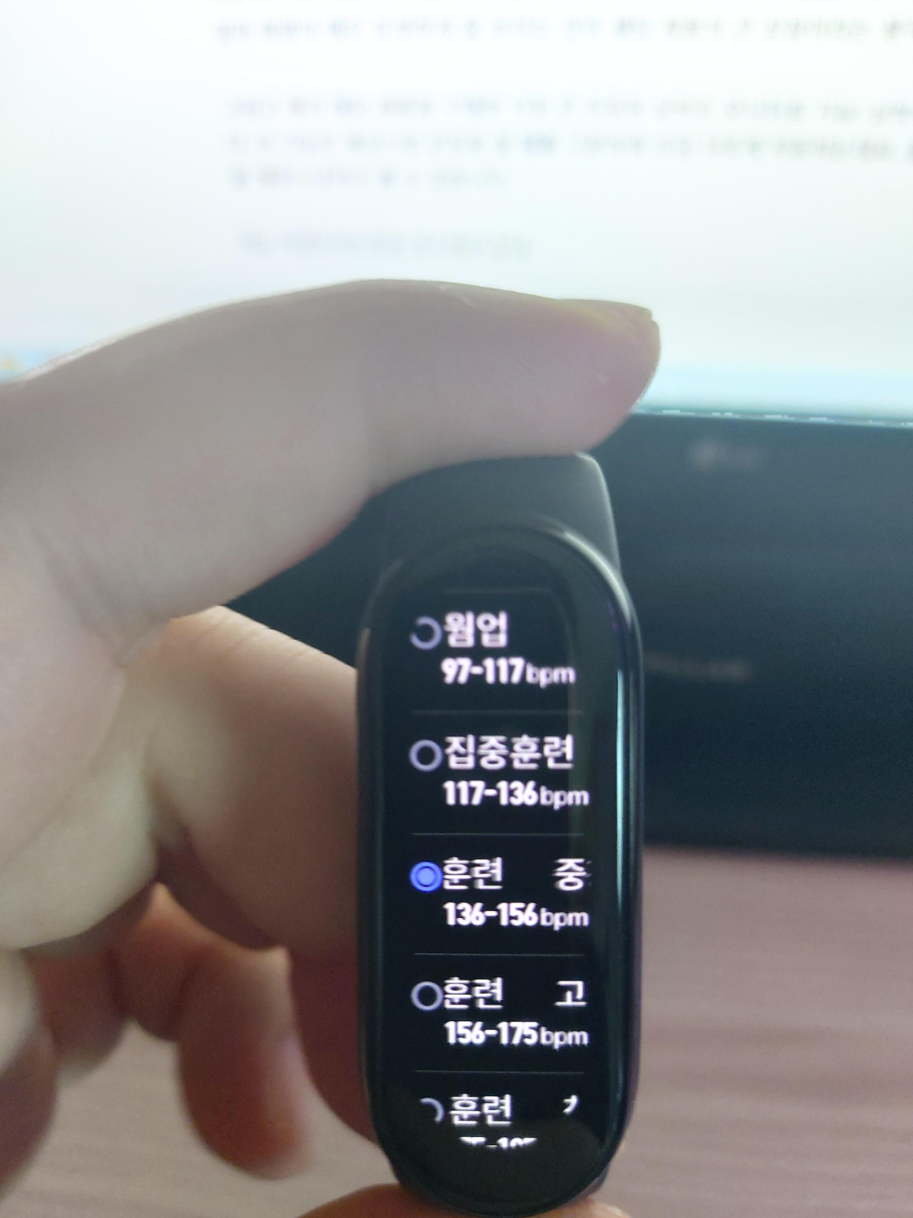 특히 심박수 알림 설정 기능은 운동 모드를 사용할 때 매우 필요한 기능입니다. 심박수 알림 설정에는 웜업부터 집중훈련, 중강도, 고강도, 최고강도, 사용자 지정. 이렇게 6가지 선택지가 있는데요. 저의 경우는 최대 심박수 기준 60% ~ 80% 사이로 직접 지정하였답니다.