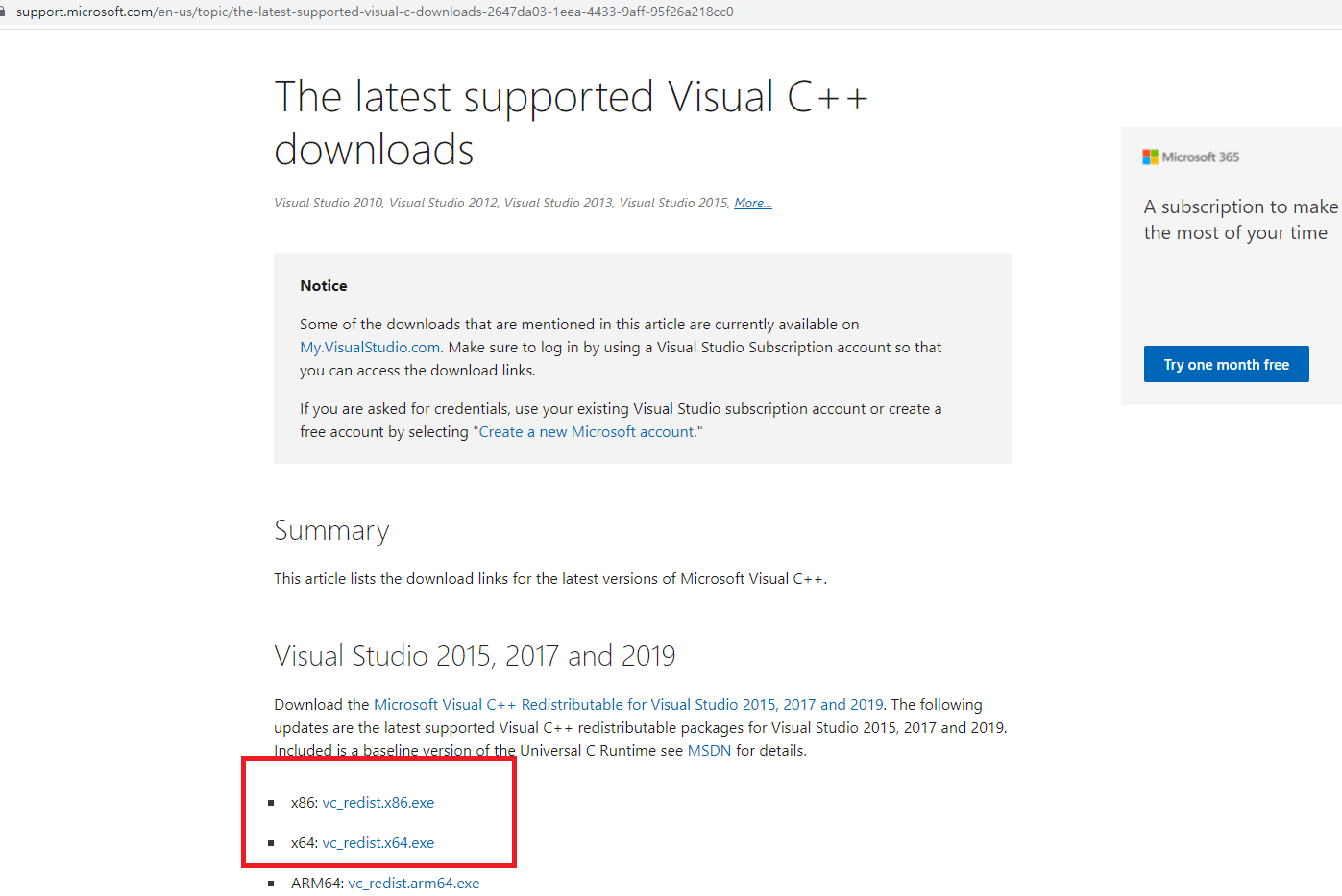 The latest supported Visual C++ downloads